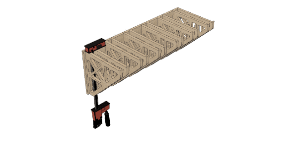 The clamp rack is designed to be made from 3/4" plywood and only uses about one-half of a 48x96" sheet. This is dead simple and easy to make. Simply use the pre-drilled screw holes to perfectly align each of your support brackets in the dados which help increase strength while your glue dries. You can make this design with a CNC router or a table saw and hang up all your clamps.