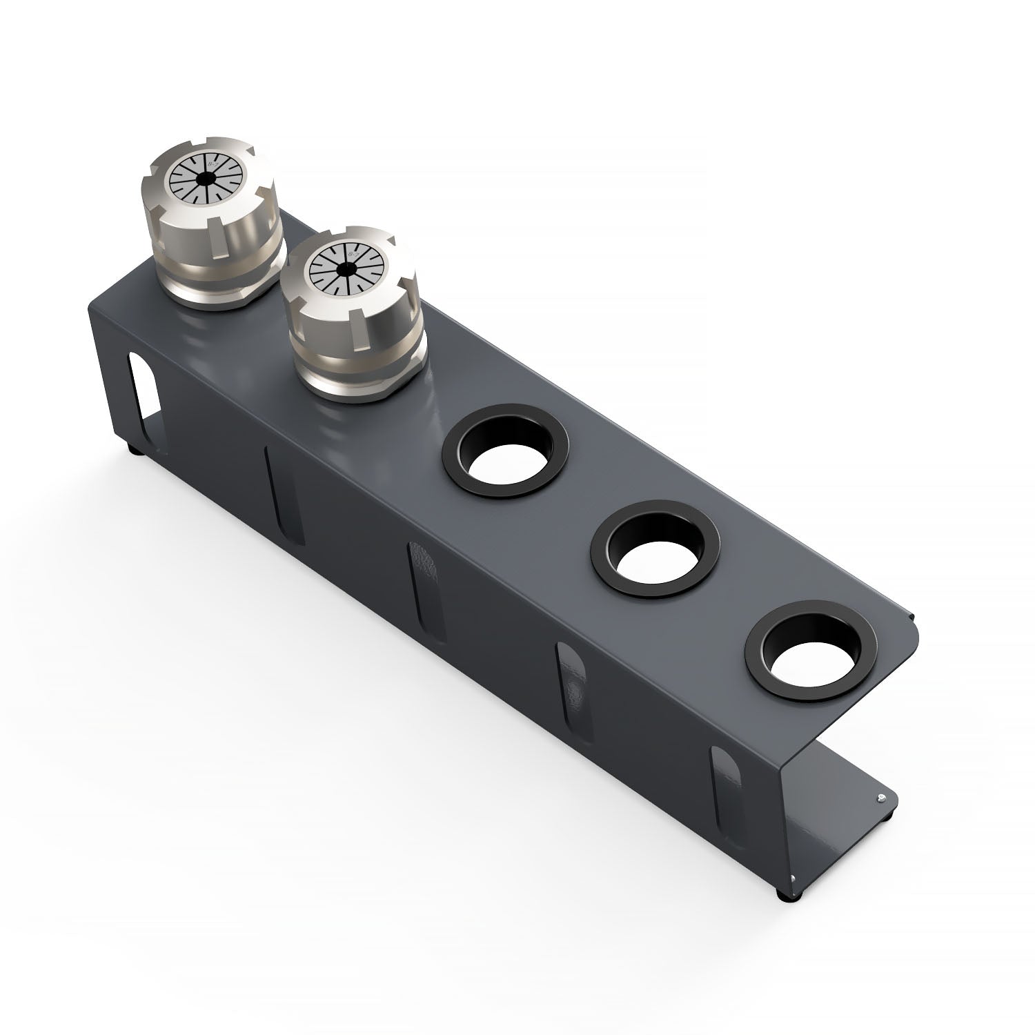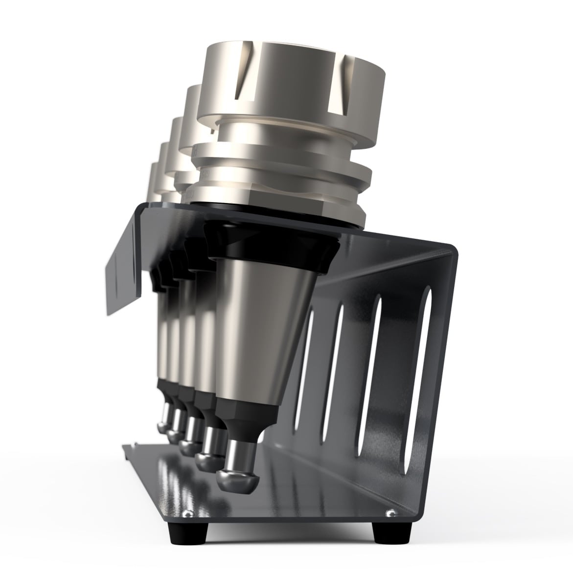 Your CNC tool holders are crucial and should be stored with care. Enter the Portland CNC Tool Holder Holder System. Sporting an industrial steel grey finish, this patented design ensures your ISO30 and BT30 CNC tool holders are stored safely yet easily transported.
